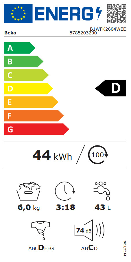 Beko B1WFK2604WEE keskeny elöltöltős mosógép – 6 kg