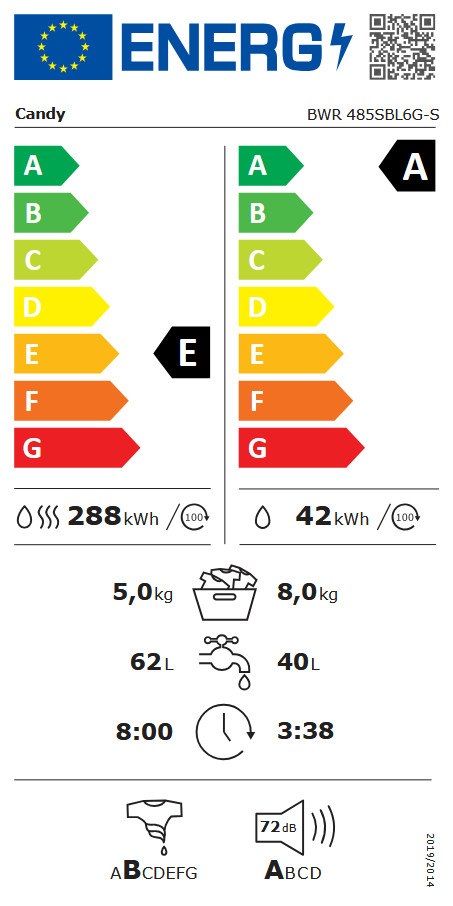 • Energiahatékonyság: A (mosás), E (mosás+szárítás)