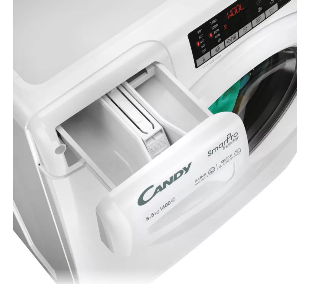 A Candy Smart Pro Inverter mosó-szárítógép hatékony megoldást kínál azok számára, akik egyetlen készülékben szeretnék megoldani a mosást és a szárítást. A 8 kg-os mosási és 5 kg-os szárítási kapacitás ideális a mindennapi használathoz, míg a Snap&Wash és a hOn applikáció intelligens vezérlést biztosít. A Speed-Drive inverter motor, a gyorsprogramok és a Mix Power System hatékony és rugalmas ruhakezelést tesznek lehetővé.