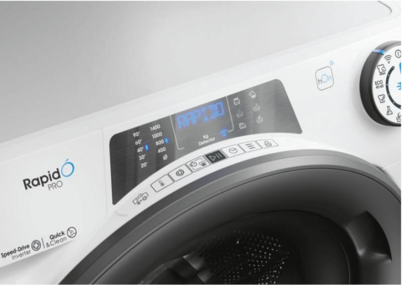A Candy RapidÓ PRO a professzionális teljesítmény és a maximális kényelem tökéletes kombinációja. A 9 kg kapacitású, A energiaosztályú mosógép akár 20%-kal hatékonyabb energiafelhasználást biztosít, mint egy hagyományos „A” osztályú modell. Az innovatív Speed-Drive Inverter motor és a Quick&Clean technológia 39 perc alatt is teljes mosási eredményt kínál. A Steam Hygiene Plus program pedig a gőz erejével távolítja el a baktériumok és allergének 99,9%-át. A WiFi + Bluetooth® kapcsolat és a hOn applikáció révén távolról vezérelhető, extra programokkal és okos tippekkel gazdagítható.