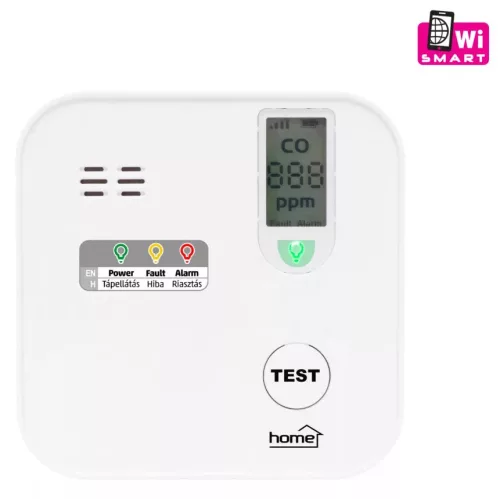HOME CO10SMART szén‑monoxid (CO) vészjelző, Wi‑Fi (Tuya), LCD kijelző, elemes – 5 év elemélettartam, 10 év érzékelő‑élettartam