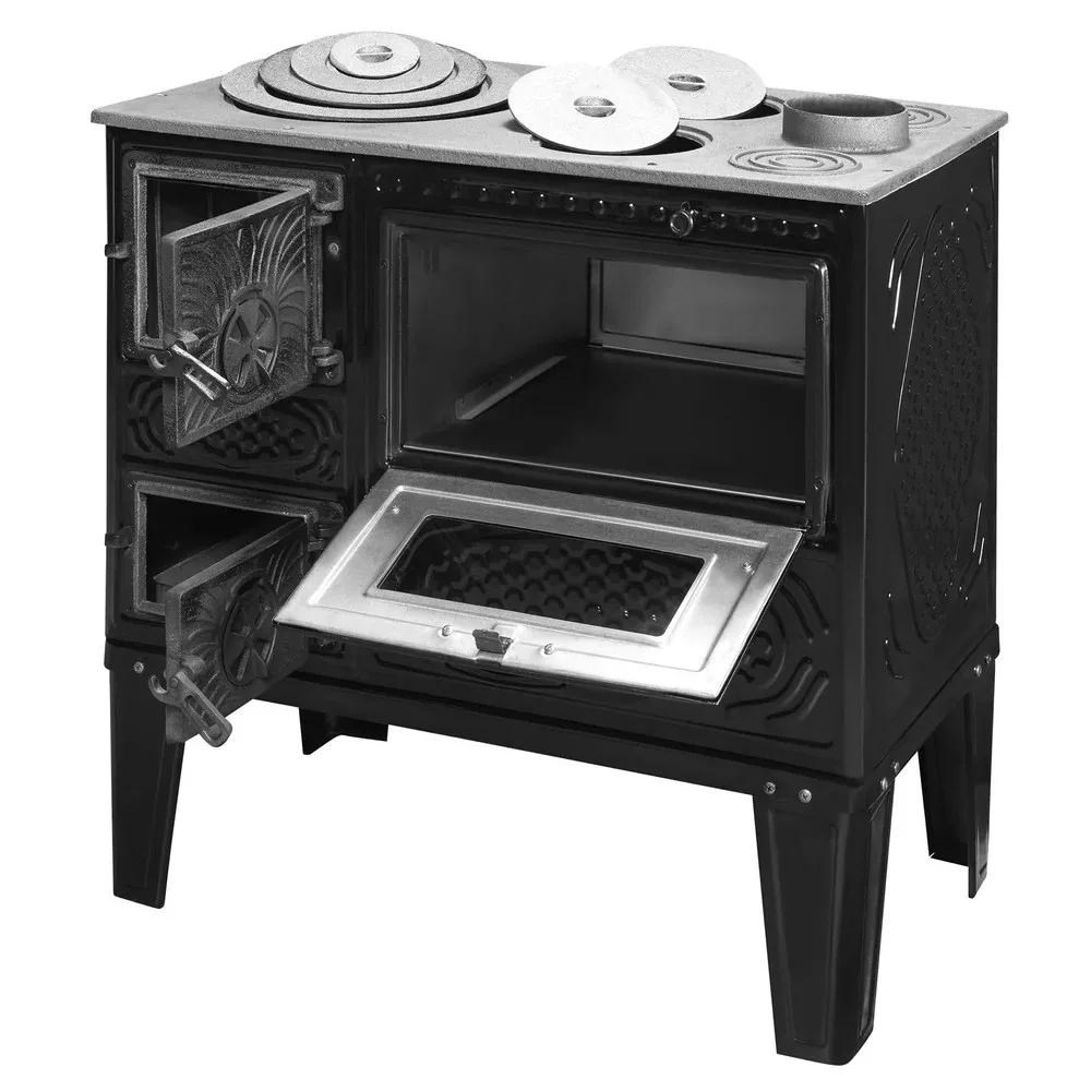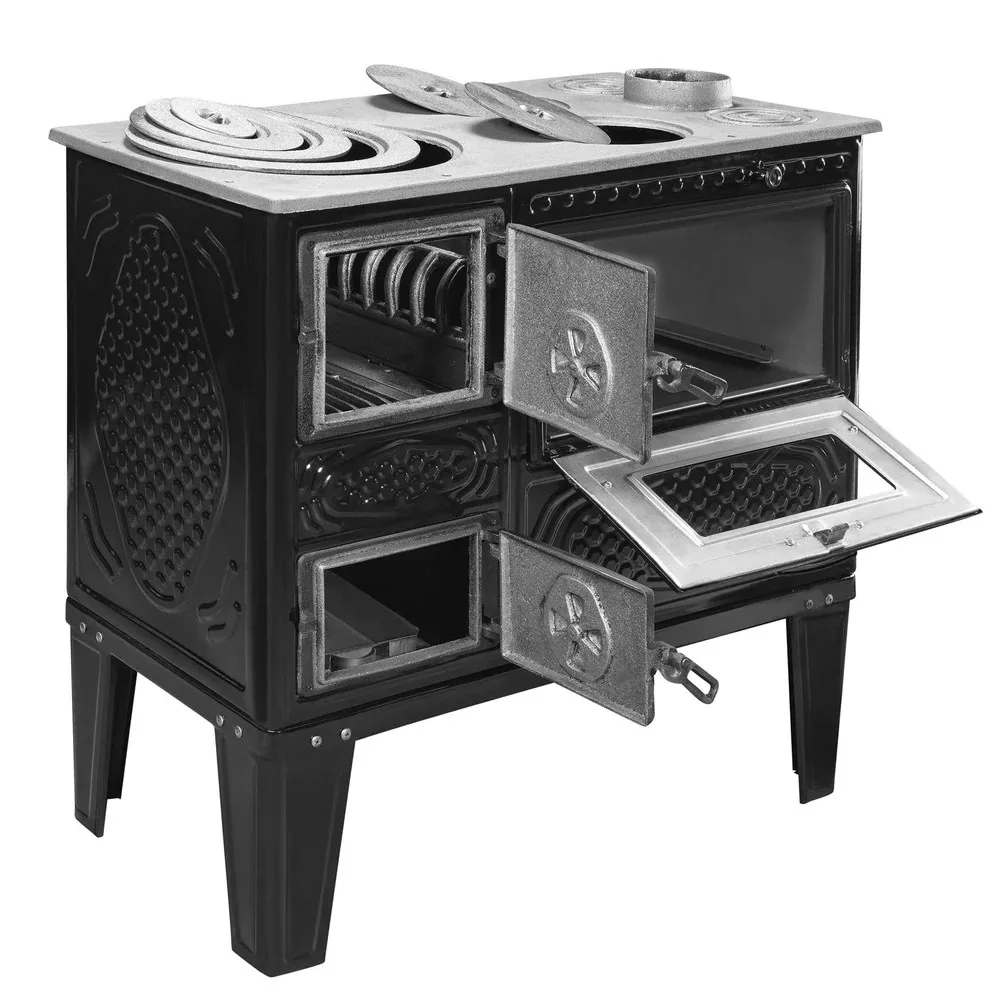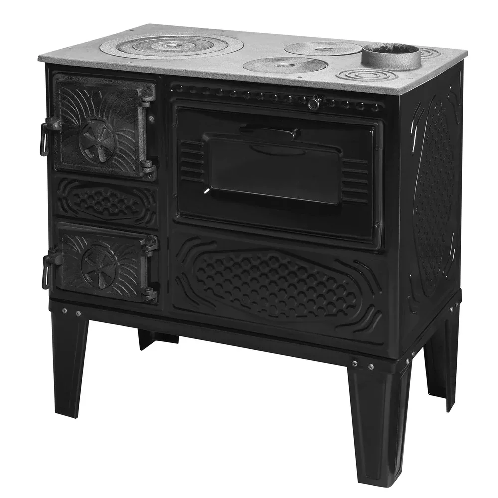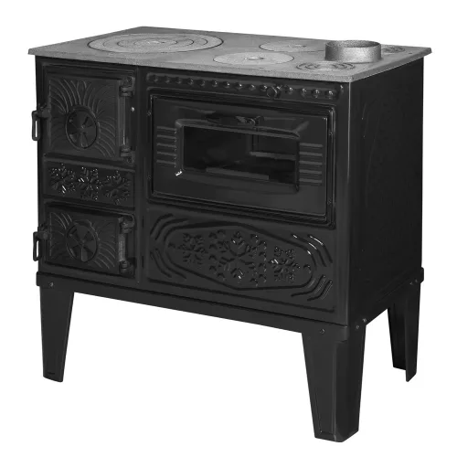A Hunor YTK 210 fekete sparhelt (jobbos) egy klasszikus és időtálló konyhai fűtő- és főzőkészülék, amely a hagyományos fa tüzelést ötvözi a modern anyaghasználattal. Erős öntöttvas elemekkel, samott béléssel és tágas sütővel rendelkezik, így ideális választás mindennapi főzéshez és fűtéshez. 7,85 kW teljesítményével hatékonyan biztosítja a kellemes meleget és a kiváló sütési-főzési eredményeket.