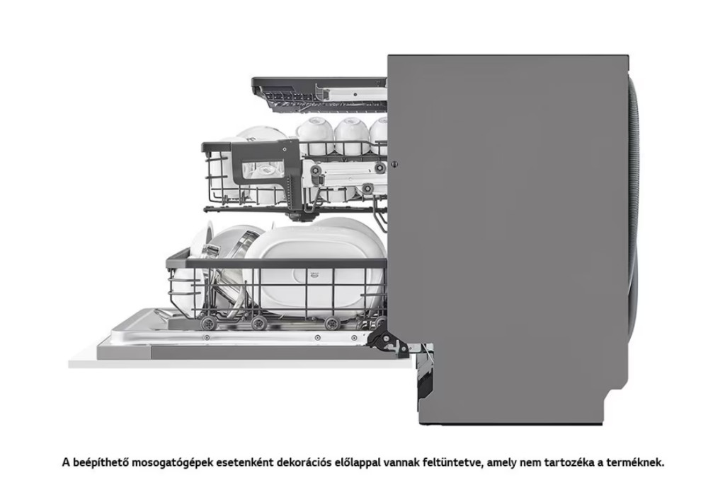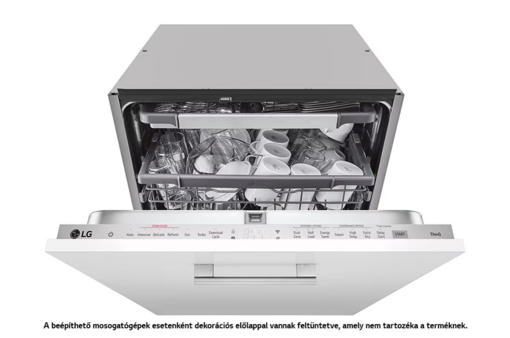 LG DB365TXS QuadWash™ beépíthető gőzös mosogatógép TrueSteam™ technológiával, Automatikus ajtónyitás, 14 teríték, ThinQ™ WiFi funkció