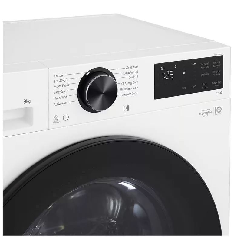 LG F2X50S9TWB elöltöltős mosógép 9 kg AI Direct Drive™ technológiával