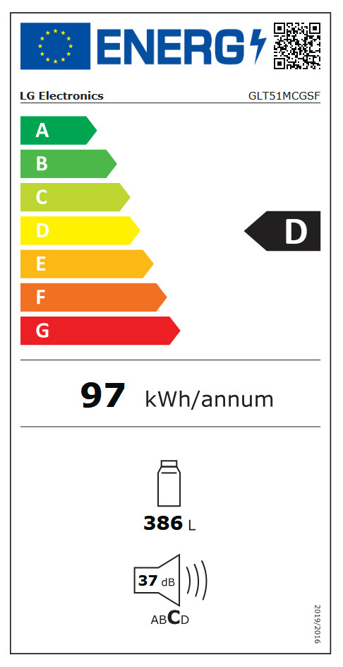 • Energiaosztály D, éves fogyasztás 97 kWh: Modern energiahatékonysági szabványnak megfelel.