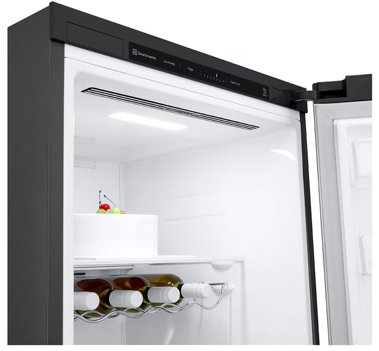 Elegáns, prémium kialakítás – fekete „Matte Black” kivitelben – és valós teljesítmény találkozik a 386 l kapacitású, energiatakarékos LG GLT51MCGSF modellel. A beépített LINEAR Cooling™ és DoorCooling+™ technológiák révén az ételek frissebbek maradnak, miközben az inverteres lineárkompresszor gazdaságos és csendes működést biztosít. A modern belső LED‑világítás, több polc, öt átlátszó ajtókosár, valamint az „Inner Dot Display” vezérlőpanel új szintre emeli a hűtést – stílusos konyha és hatékony hűtés egy csomagban.