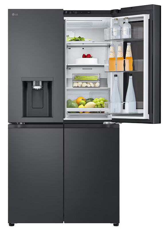 Az LG GMG960EVEE egy luxuskategóriás, négyajtós hűtőszekrény, amely kiemelkedő technológiáival és óriási kapacitásával tökéletes választás nagyobb családok számára. A 638 literes űrtartalom bőséges helyet biztosít minden élelmiszer számára, míg az InstaView™ Door-in-Door® megoldás lehetővé teszi, hogy két gyors kopogtatással belásson a hűtőbe anélkül, hogy kinyitná az ajtót, így energiát takarít meg. Az UVnano™ víz- és jégadagoló óránként automatikusan sterilizálja a fúvókát, a Total No Frost és Multi Air Flow rendszerek pedig egyenletes hőmérsékletet biztosítanak a teljes belső térben. A DoorCooling+™ és a LinearCooling™ hosszabb ideig frissen tartja az ételeket, míg a Fresh Balancer™ és a Moist Balance Crisper™ optimális páratartalmat biztosít a gyümölcsök és zöldségek számára. A ThinQ™ Wi-Fi funkcióval pedig távolról is irányíthatja készülékét.