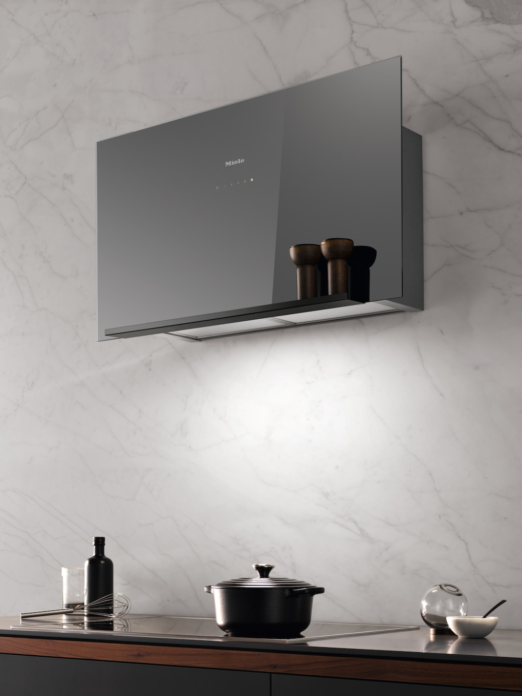 Fali páraelszívó függőleges üveglappal, és különösen lapos designnal a nagyobb helyért a fejnek.