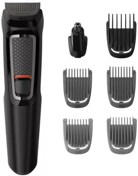 Vágókészülék, Orr- és fülszőrzetvágó, 2 szakállfésű, 2 borostafésű, 1 hajfésű, Tisztítókefe, Tárolótok