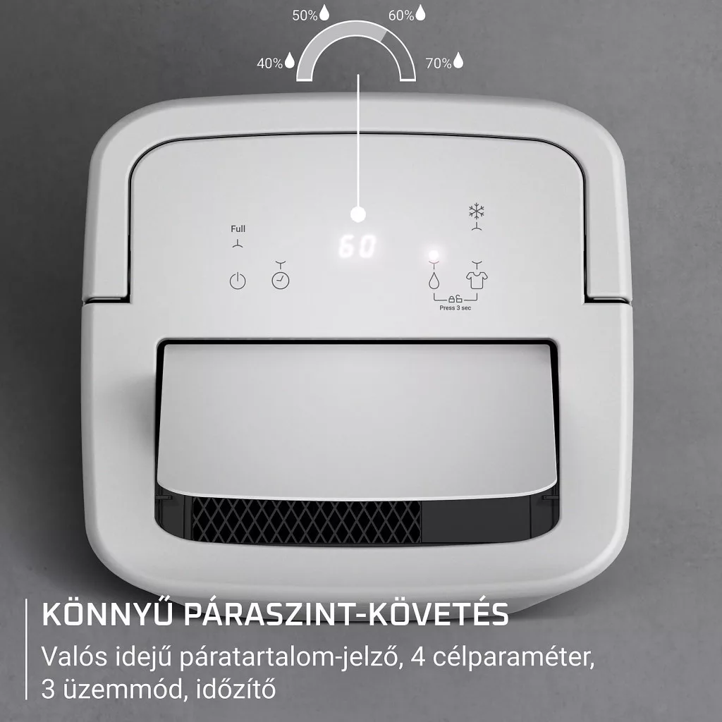 • Valós idejű páratartalom-kijelzés: könnyen nyomon követhető kijelzővel.