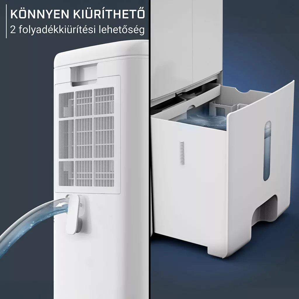• Folyamatos vízelvezetés: 1 méteres tömlő a kényelmes, megszakításmentes ürítéshez.