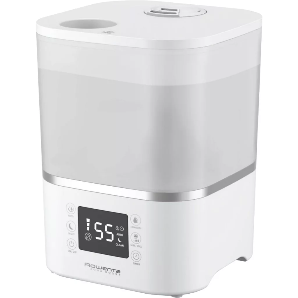 Lélegezzen fel tisztább, hidratált levegővel a Rowenta Aqua Boost HU4020F0 párásító segítségével! Az intelligens, ultrahangos technológia akár 99,9%-ban eltávolítja a baktériumokat a levegőből, így tökéletes választás allergiások, kisgyermekes családok és asztmások számára. A 2,5 literes tartály akár 15 órás üzemidőt kínál, míg a 30 dB-es ultra csendes működés garantálja a nyugodt alvást. Az automata, éjszakai és kézi üzemmódok, valamint a LED kijelző és a 360°-os légkivezetés a modern otthon tökéletes párásítását biztosítják.