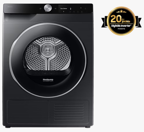 Bármely Samsung szárítógépet, amely Digital Inverter Motorral rendelkezik, bizalommal vásárolhatod meg, és 20 év garanciát* kapsz a motorra.