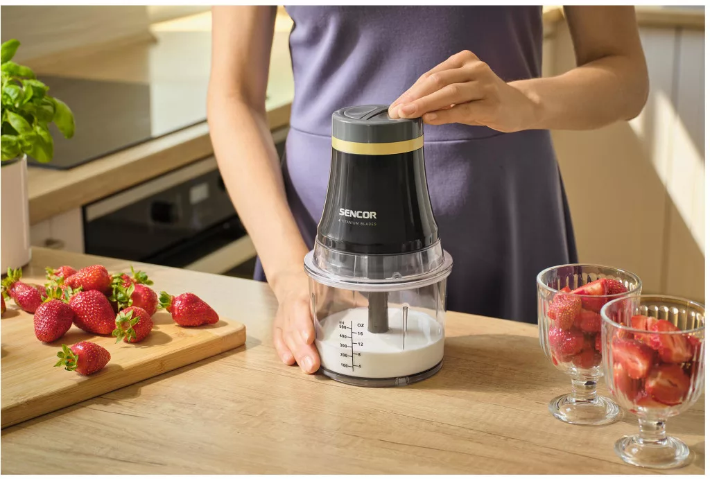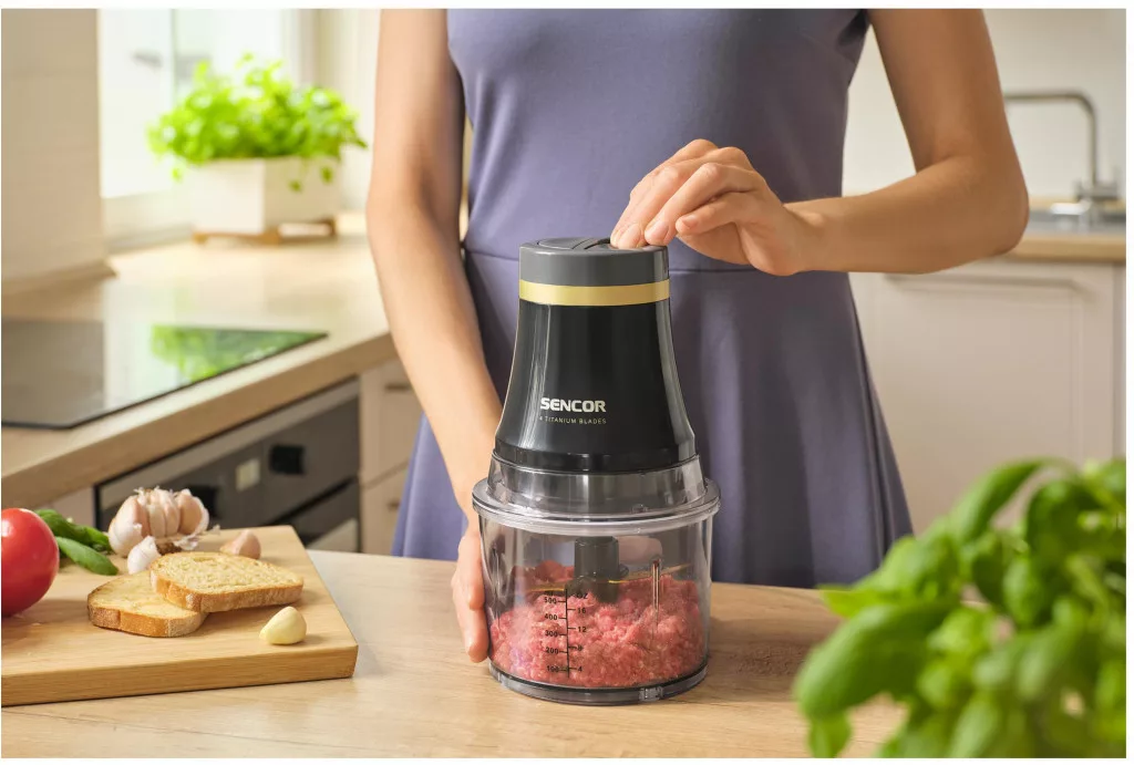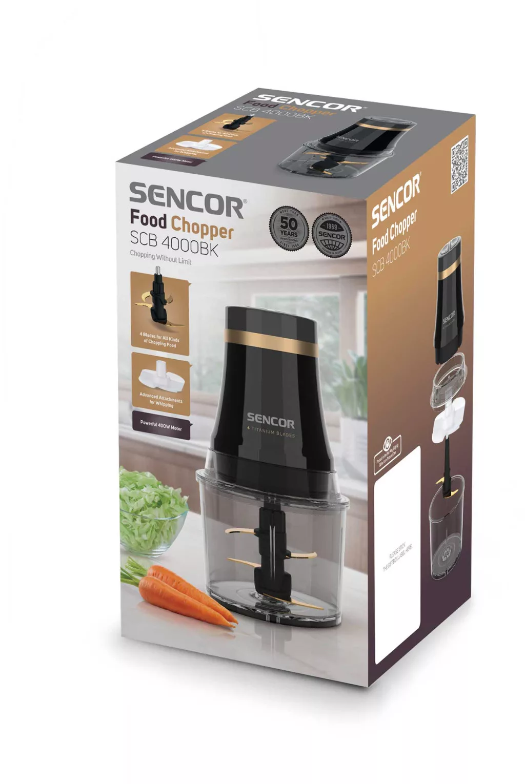 A Sencor SCB 4000BK konyhai aprító gyors és hatékony segítséget nyújt a mindennapi ételkészítés során. Az erőteljes motor és a titán bevonatú pengék gondoskodnak a precíz aprításról, miközben a praktikus kialakítás kényelmes és biztonságos használatot biztosít.