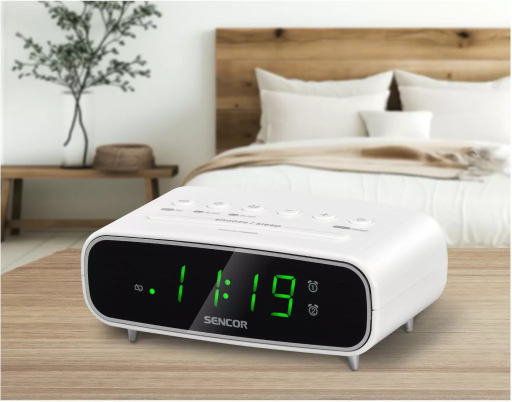 A Sencor SRC 2600 rádiós ébresztőóra praktikus és modern megoldást kínál a mindennapi ébredéshez. A jól látható, 7,5 cm-es zöld LED kijelző, a kettős ébresztési lehetőség és a beépített PLL FM rádió garantálja a kényelmes, személyre szabott használatot. Legyen szó rádiós ébresztésről vagy hangjelzésről, az SRC 2600 minden reggelt megbízhatóan indít.