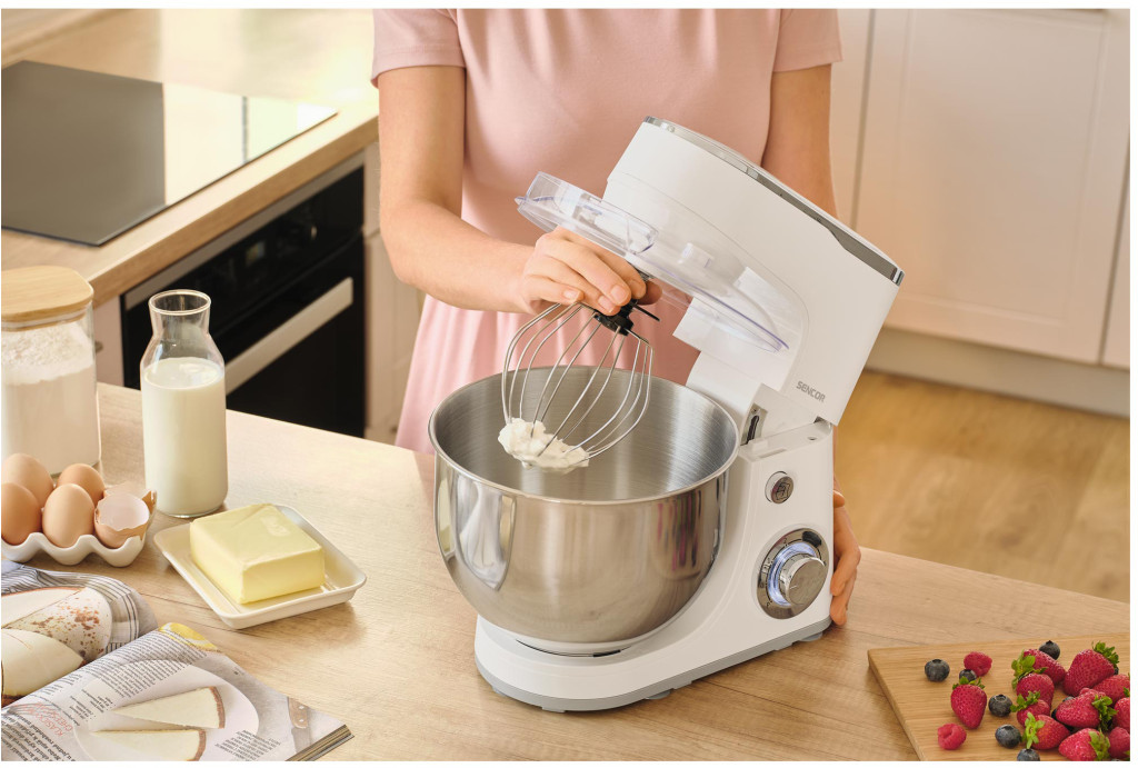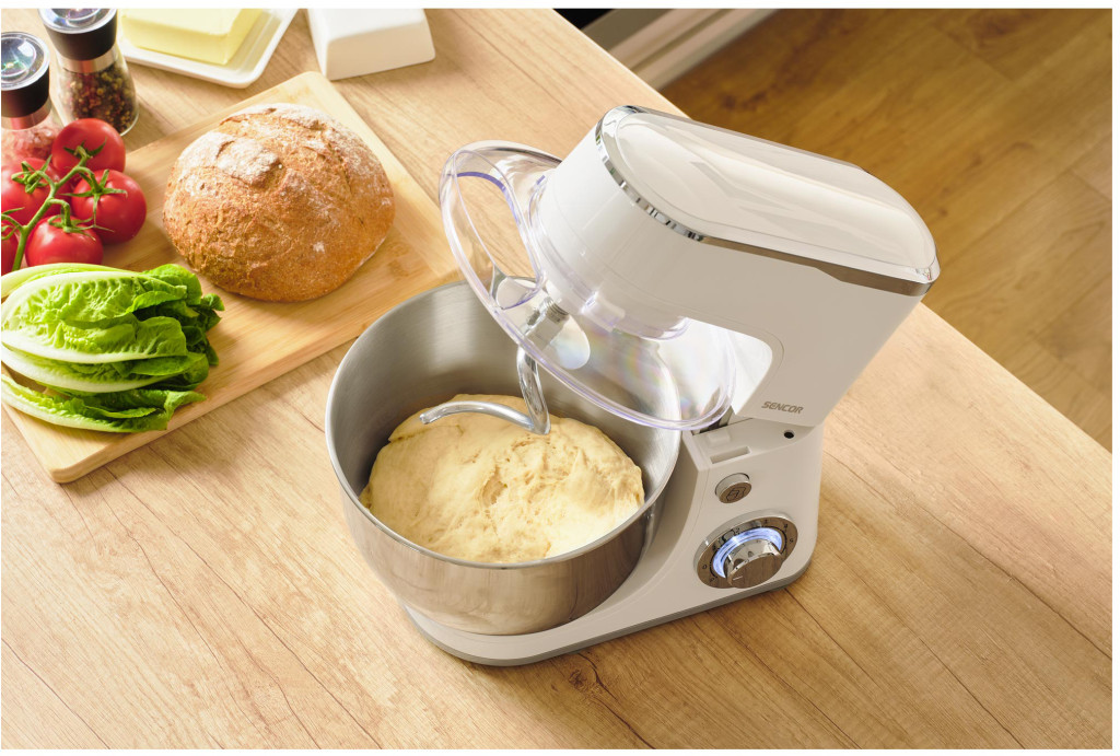 Erőteljes teljesítmény és professzionális eredmény otthon! A Sencor STM 3630WH 1300 W-os motorjával könnyedén megbirkózik a sűrű tésztákkal és a keményebb alapanyagokkal is. A nagy, 5,5 literes rozsdamentes acél tál és a 6 sebességfokozat PULSE funkcióval garantálja a precíz és hatékony munkavégzést – legyen szó dagasztásról, habverésről vagy krémek készítéséről.