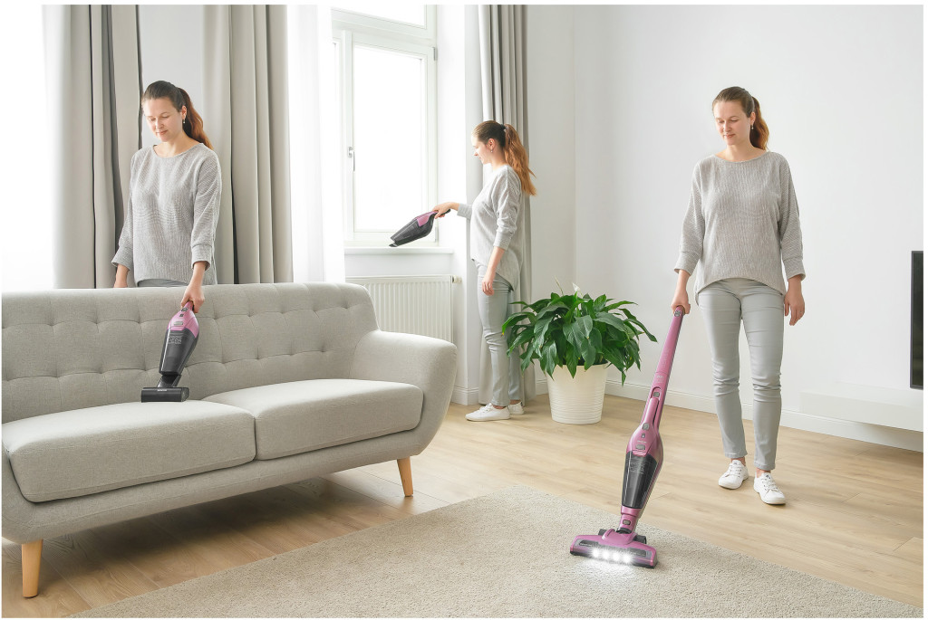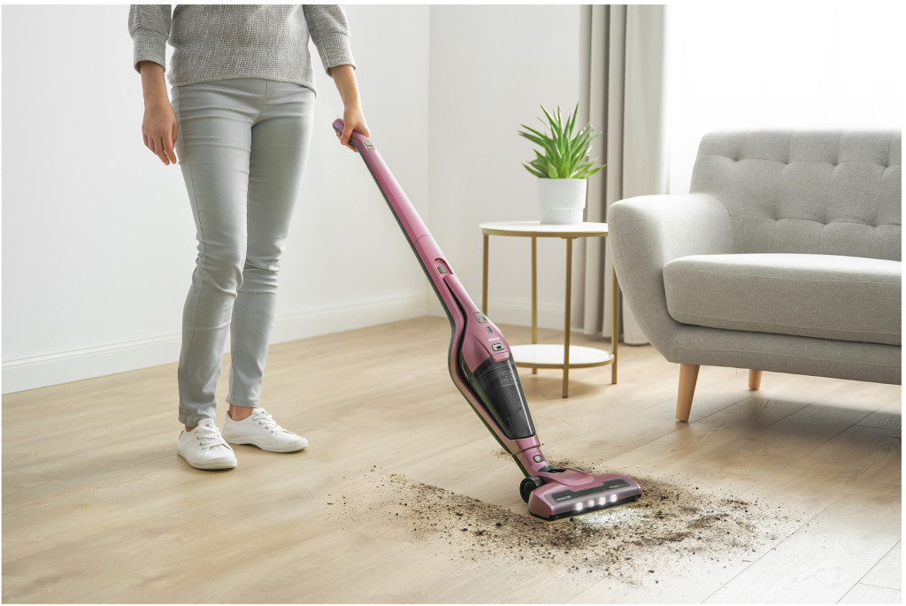 A vezeték nélküli kialakítás és a 180°-ban forgatható szívófej segítségével a porszívó a legszűkebb helyeken is könnyedén használható. A beépített LED világítás feltárja a nehezen látható szennyeződéseket, így egyetlen porszem sem marad hátra. A töltőállomás nemcsak a porszívó töltésére szolgál, hanem a tartozékok tárolását is megkönnyíti.