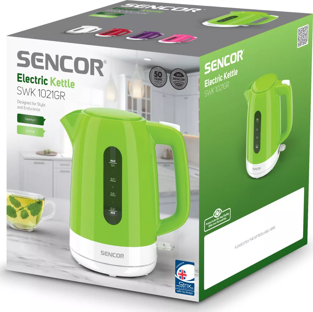 A Sencor SWK 1021GR vízforraló ideális választás a gyors és hatékony mindennapi használathoz. A 2200 W teljesítmény biztosítja a gyors vízforralást, míg az 1 literes kapacitás tökéletes kisebb háztartások számára. A praktikus kialakítás és a fejlett biztonsági funkciók kényelmes és biztonságos használatot garantálnak.