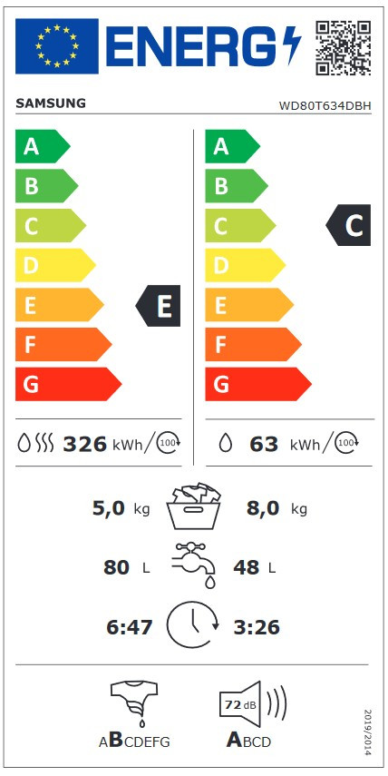 SAMSUNG WD80T634DBH/S6 mosó- és szárítógép