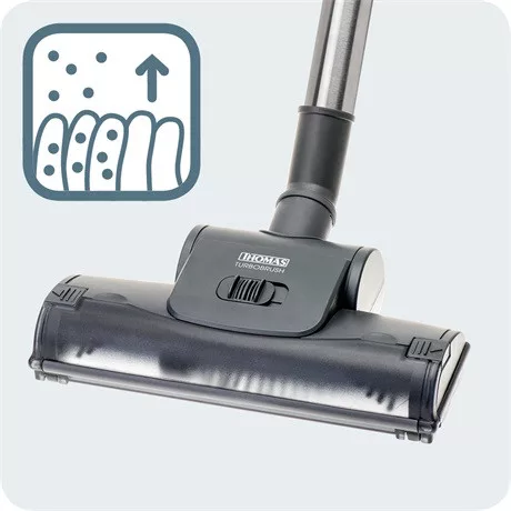 A Thomas Cycloon Hybrid Pet&Friends egy innovatív porzsák nélküli hibrid porszívó, amely egyszerre kínál portartályos (DryBox) és vízszűrős (AQUA-FreshAir-Box) üzemmódot. A készülék ideális kisállattartó háztartások számára, lehetővé téve a gyors portartályos takarítást vagy a teljeskörű, alapos vízszűrős tisztítást, amely enyhén párásítja és felfrissíti a levegőt. Praktikus kiegészítőkkel felszerelve, hatékony megoldást nyújt minden napra.
