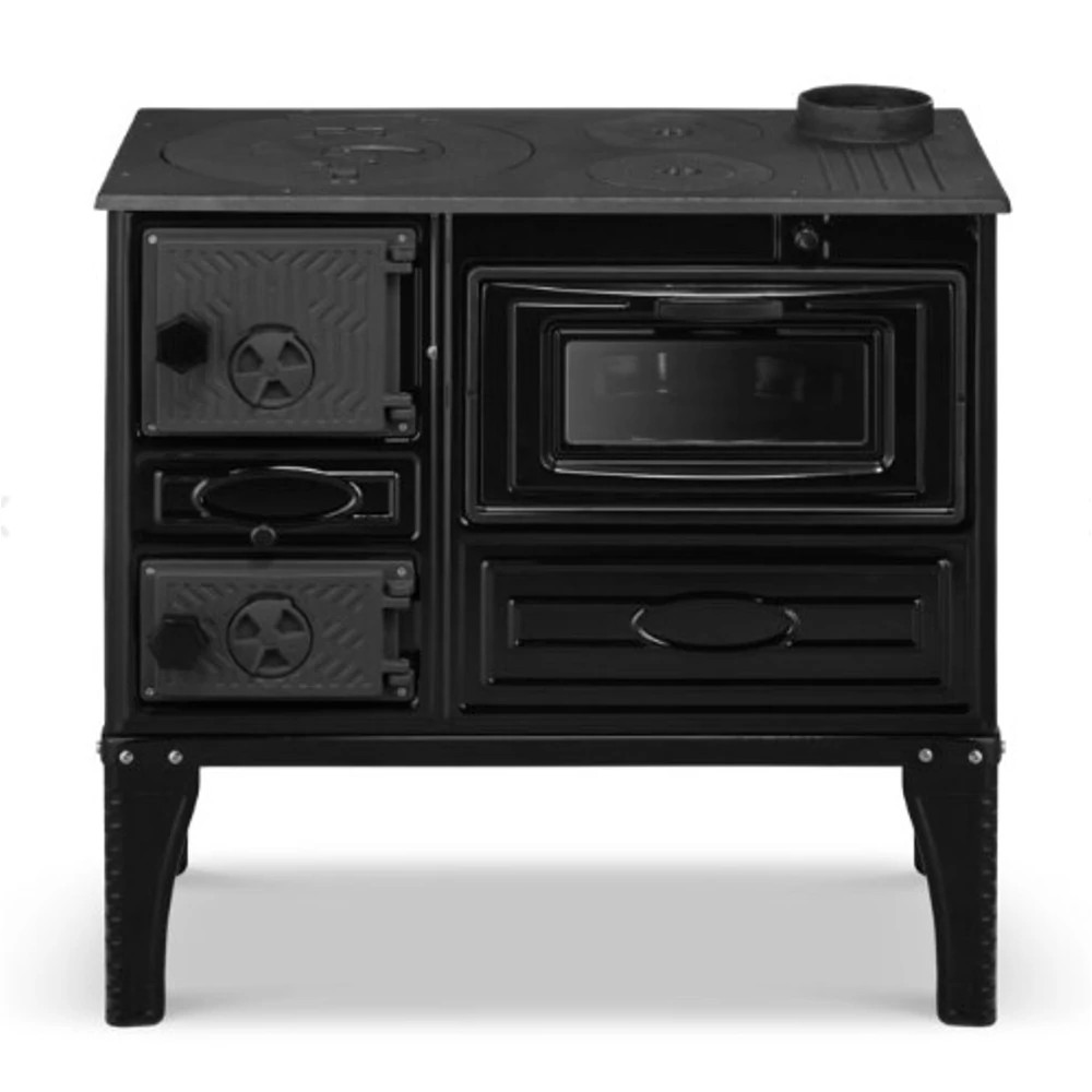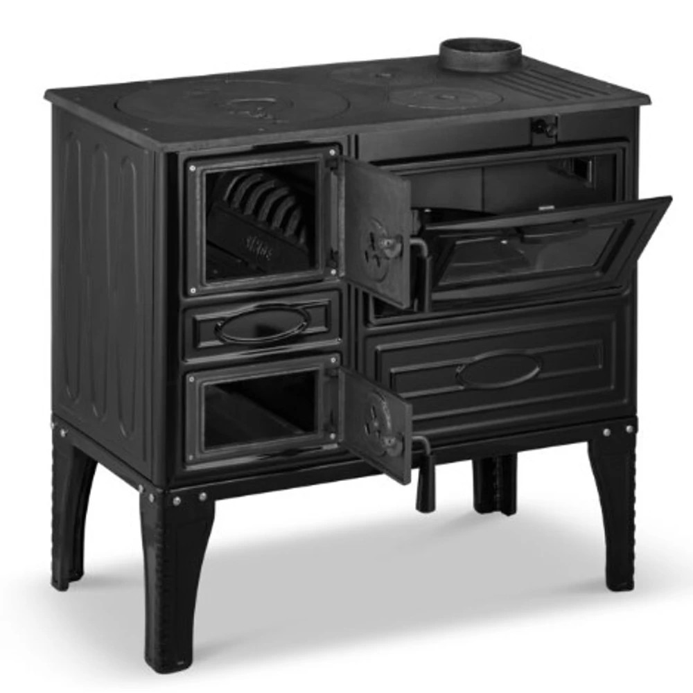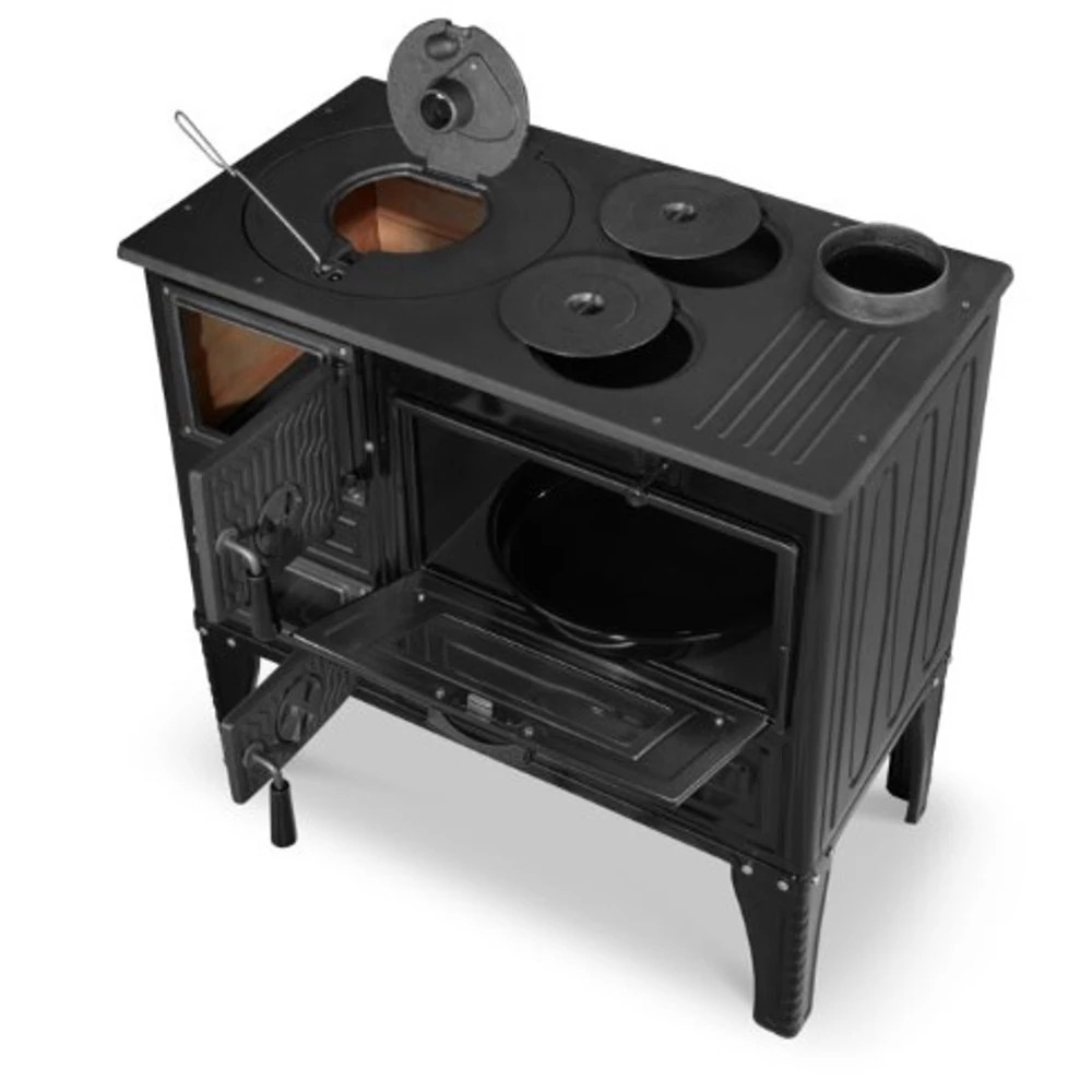 A Hunor 304-U fekete sparhelt (jobbos) a hagyományos és modern konyhák tökéletes ötvözete. Masszív öntvény tűztérrel, öntvény főzőlappal és gyűrűkkel, valamint zománcozott acél sütővel rendelkezik, így hosszú élettartamot és kiemelkedő hatékonyságot kínál. A jobboldali füstcső-kivezetés és az elegáns fekete szín stílusos és praktikus választássá teszi minden otthon számára.