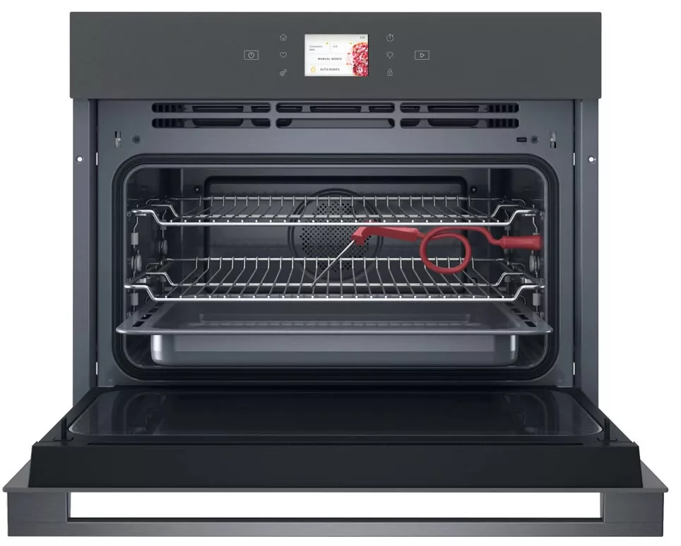 A Whirlpool W Collection kompakt sütő-mikró a prémium design és az intelligens technológia tökéletes ötvözete. A Star Dust matt üveg felület elegáns grafitszürke kivitelben emeli konyhád megjelenését, míg az érintőképernyős szöveges kijelző és a 6. Érzék technológia egyszerű, intuitív használatot biztosít. Az 53 literes sütőtér, a grill és mikrohullám funkciók, valamint a WiFi kapcsolat modern, sokoldalú megoldást kínálnak a mindennapi sütéshez és melegítéshez.