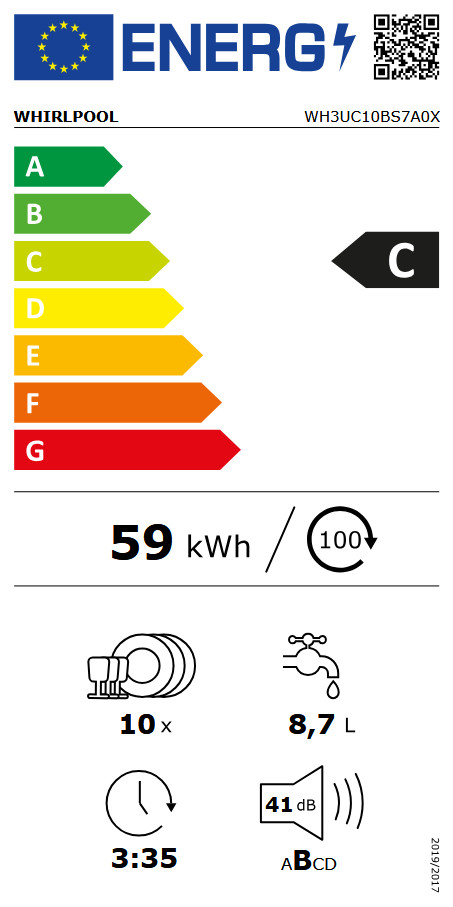 WHIRLPOOL WH3UC10BS7A0X mosogatógép beépíthető 10 teríték keskeny
