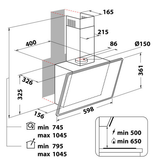 1. Felső szekrénybe vagy kürtőbe építhető páraelszívó