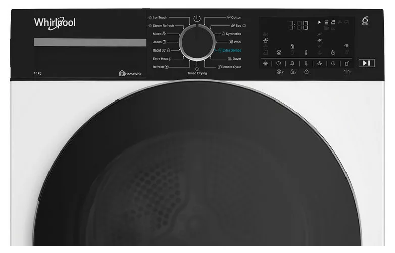 A Whirlpool WP C10X WBS EE hőszivattyús szárítógép a prémium szárítási technológia és az energiahatékonyság tökéletes egyensúlyát kínálja. A 10 kg-os kapacitásnak, a 6. Érzék technológiának, valamint az olyan fejlett megoldásoknak, mint a Precision Dry, az AdaptiveDry és az Iron Touch, köszönhetően a ruhák mindig kíméletesen, gyorsan és tökéletesen száradnak meg. Az intelligens szenzoroknak hála a készülék automatikusan igazítja a szárítási paramétereket a töltethez, így elkerülhető a túlszárítás, miközben energiát takarít meg és védi a textíliákat.
